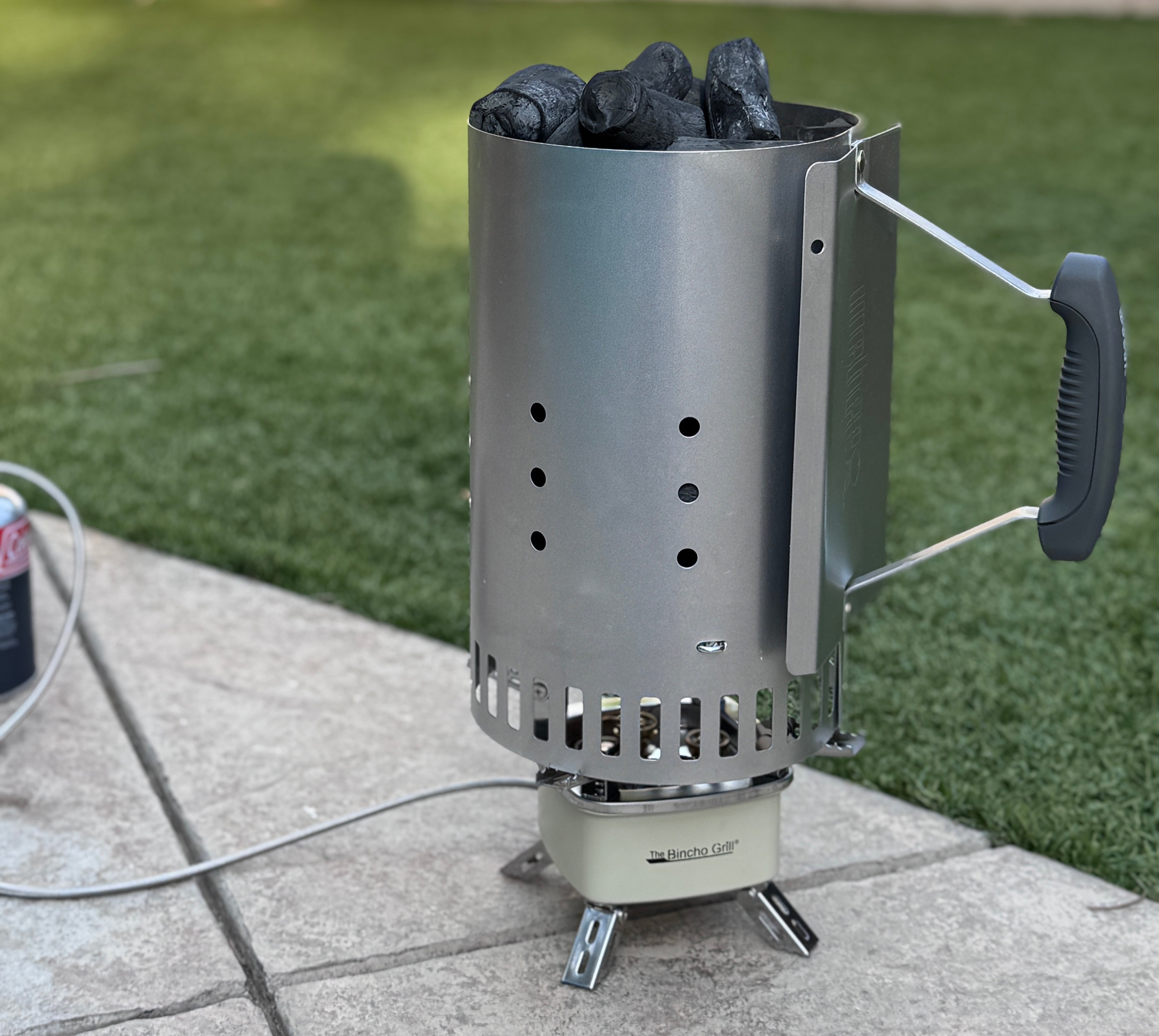 Lighting Binchotan takes patience and the right technique. Do not use lighter fluid or chemicals. For best results, place the charcoal in a charcoal chimney starter and heat over a gas burner for 20–30 minutes until glowing red before transferring to your grill.